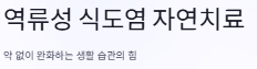 가슴이 타는 듯한 통증이나 목에 무언가 걸린 듯한 이물감으로 고생하고 있다면 생활 속 작은 변화가 절실합니다. 역류성 식도염은 약물치료도 중요하지만, 재발이 잦은 질환 특성상 역류성 식도염 자연치료 방법을 숙지하고 실천하는 것이 완치의 핵심입니다. 위산이 식도로 역류하지 않도록 환경을 조성하는 구체적인 실천법을 정리해 드립니다.