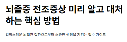 뇌세포는 혈액 공급이 중단되는 순간부터 분당 약 190만 개가 사멸합니다. 따라서 뇌졸중 전조증상 발견 시 가장 우선순위는 병원 이동 수단 확보입니다.